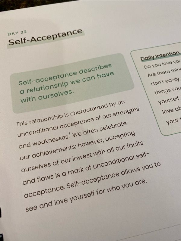 I love how this journal allows you to practice self-kindness, mindfulness, self-acceptance, gratitude, self-forgiveness, self-compassion, and much more. Since each day only focuses on about 15 minutes of practice, there is no excuse for not completing it.