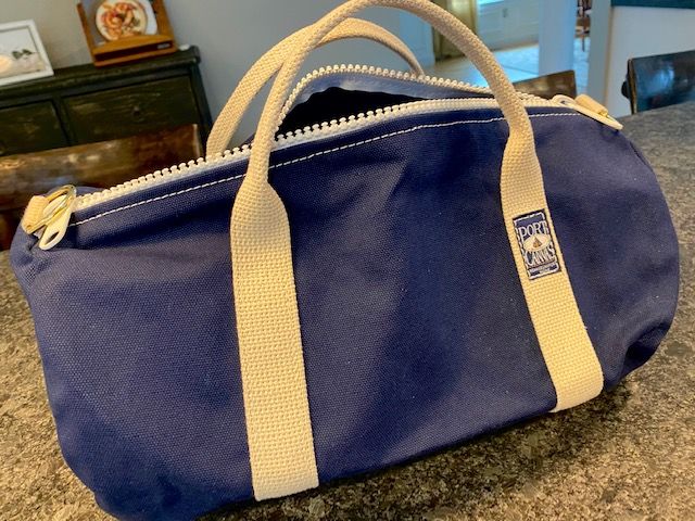 This bag is fabulous. It is a great size for day trips. The nautical navy and white makes it lovely for trips to the coast.  I love that you can look inside your bag and find the stitcher’s initials. You can see all the love and pride they put in each bag.