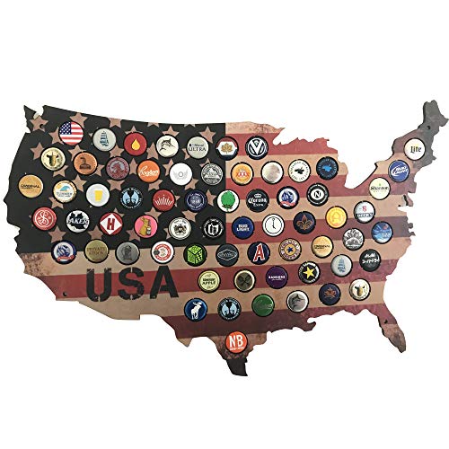 Woofdog USA Beer Cap Map: Stars and Stripes Colored USA Beer Cap Map holds 65 beer caps or bottle caps. Makes a unique piece of man cave décor and looks great in their workshop, garage, basement, bar, home cinema or retreat. It is easy to assemble and mount.