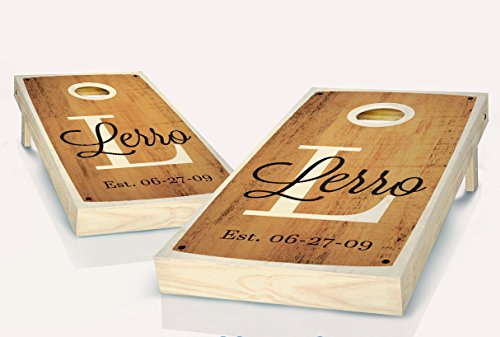 Rustic Established Date Custom Personalized Family Name Stained Cornhole Boards: 48L x 24W Heavy Duty Stained Boards made with strong, lightweight poplar frame and plywood top. The legs collapse to allow easy, compact storage. Meets all ACA Guidelines. There are no nails or screw holes here! Boards are stained at their warehouse in Ohio.