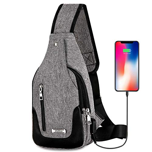 DOUN Lightweight Casual Canvas Unbalance Backpack Crossbody Sling Shoulder Bag: Made of water repellent canvas fabric with polyester lining and has a smooth zipper. It is light-weight ,ultra-comfortable across your back and chest. It can act as a single-shoulder bag/chest pack, travel bag, casual daypack, or school bag. It has an external USB Interface and earphone hole design, so you can easily and conveniently charge your phone, iPad and other devices without opening up the bag.