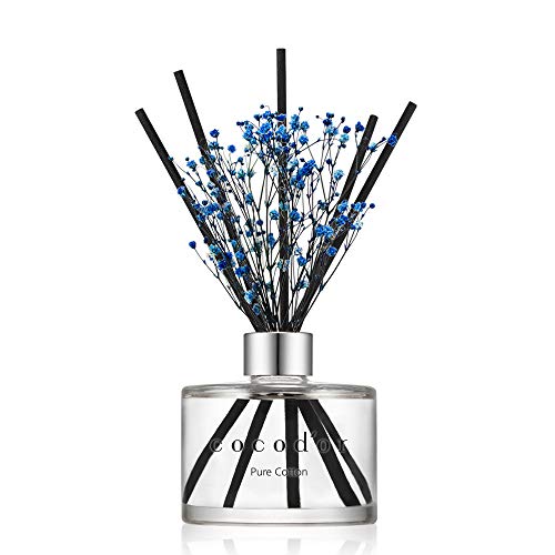 Cocodor Preserved Real Flower Reed Diffuser: A mixture of white laundry, a citrus note, and mint, leaves a texture of clean cotton to recreate a clean and pure feeling. You can choose to add or remove the number of reed sticks to match your taste. It takes 1 or 2 days for the fabric sticks to soak in the scent. When the fragrance weakens, simply turn the reed sticks upside down or replace them with new ones.