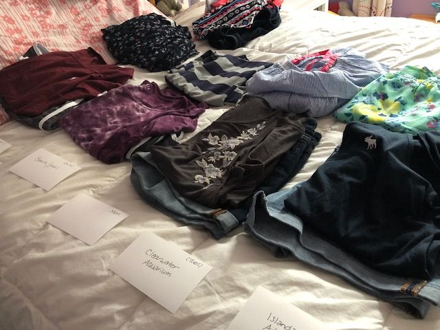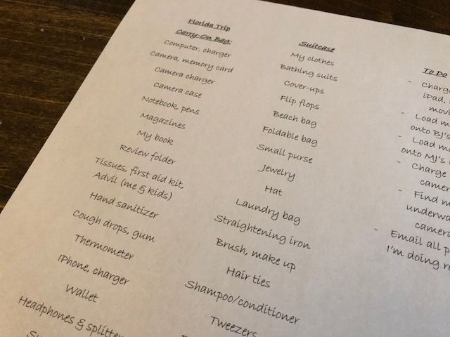 This method may sound crazy, but it works for me. Don’t forget that I’m packing for three people, so it’s easy to forget things. The girls are taking on more responsibility for packing their things and they like my method so I think I’ve created some list monsters. I can’t wait until they take over their packing completely. We tried it over February break and one kiddo ended up with no snow boots or gloves so it’s a work in progress.