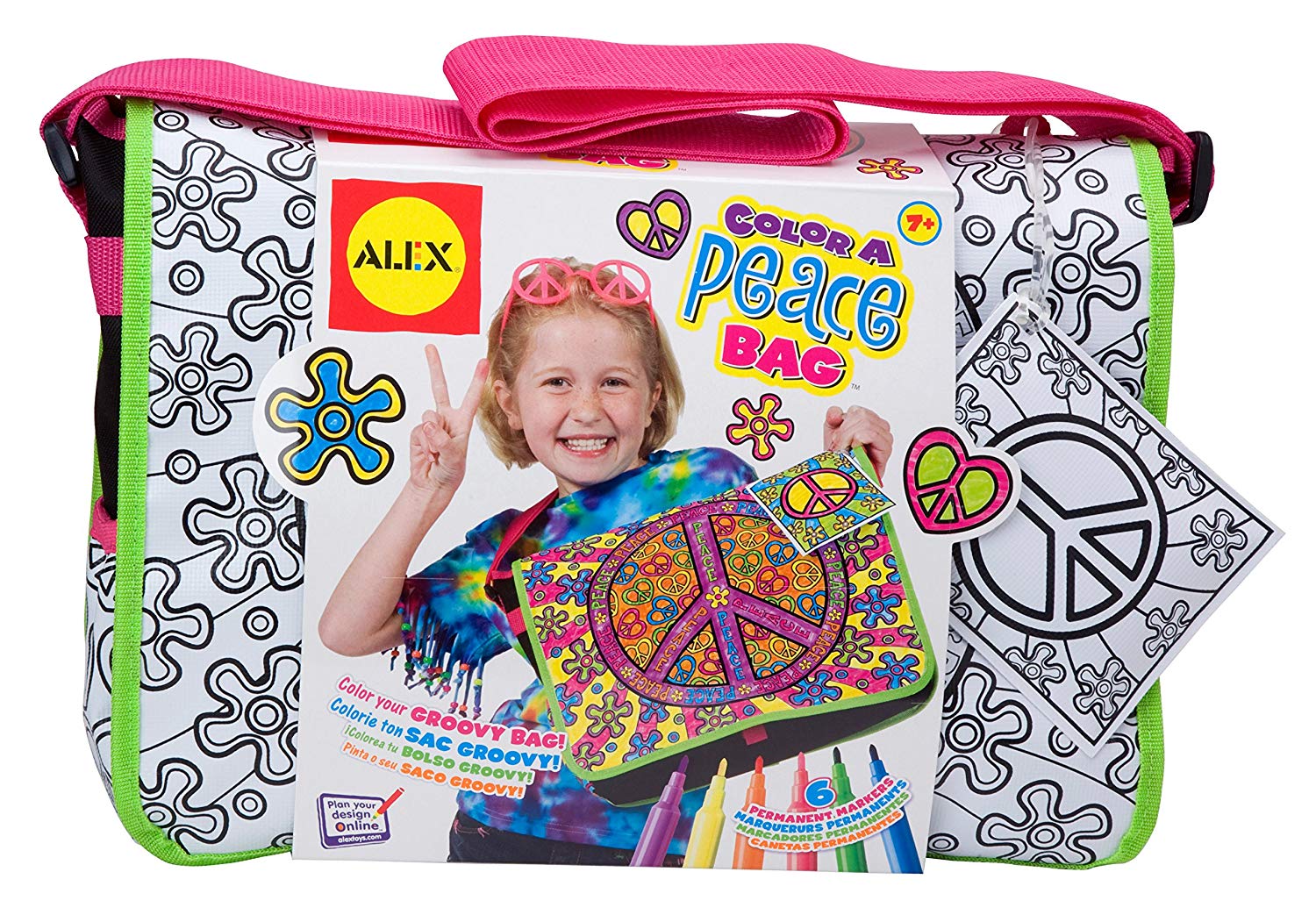 COLOR A PEACE BAG by Alex: What I love most about this craft is kids can use it while they are on vacation. They can entertain themselves at restaurants while coloring the bag, and also use the bag to carry their toys. It comes with markers and lets them show off their creativity. I used to get one every year for my girls and the coloring would start as soon as they got on the plane. Click link to purchase.