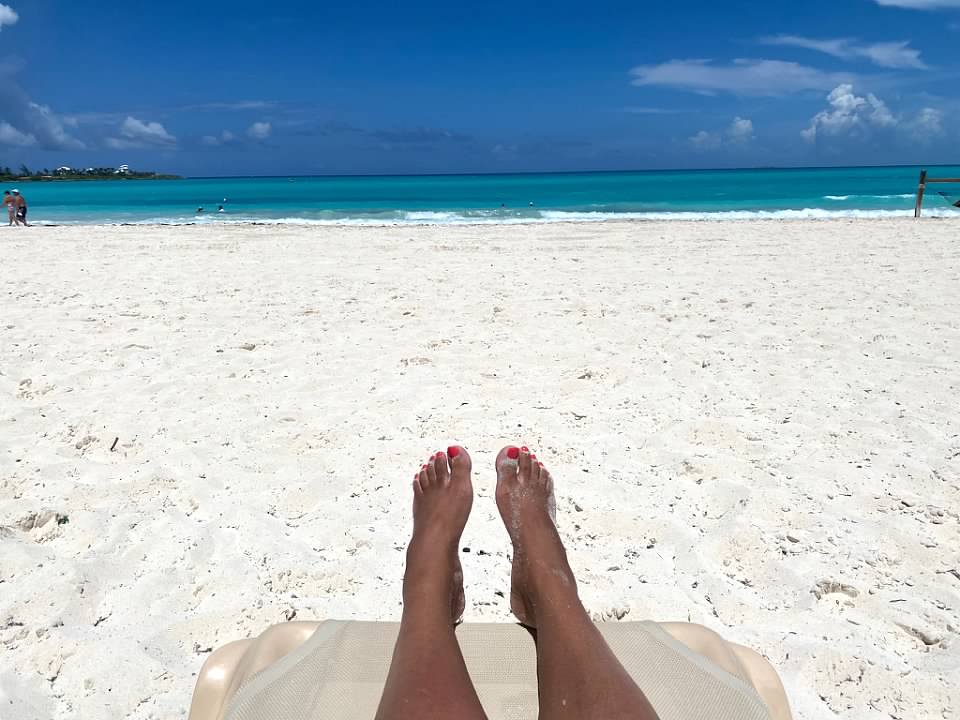 The pristine beach is a mile-long stretch of powder white sand that feels incredible on your feet. There were never many people on the beach and there were no venders. It is your own piece of paradise.