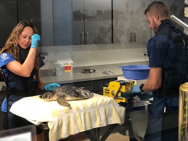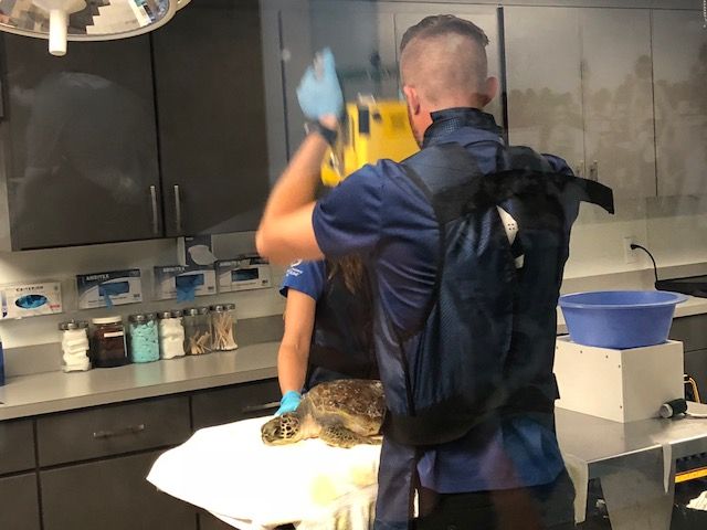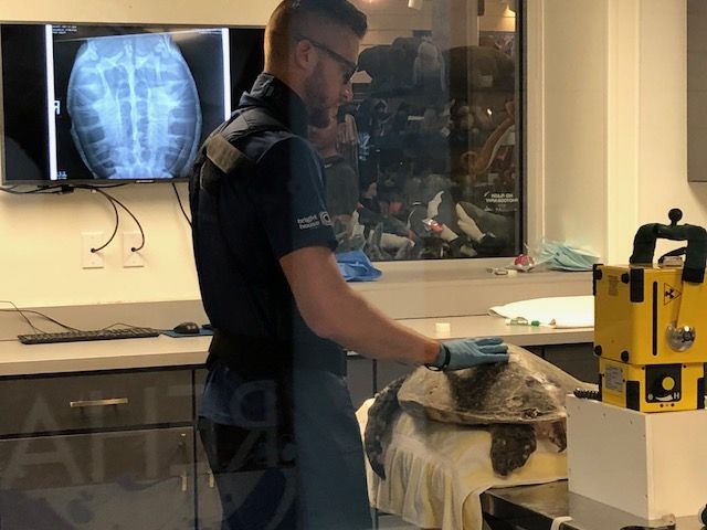 Our first stop was to see the surgical suite, where Parmesan and Quark, two juvenile green sea turtles who were brought in the day before, were getting x-rays done. They were already looking much better than they were yesterday and they will receive the best care here.