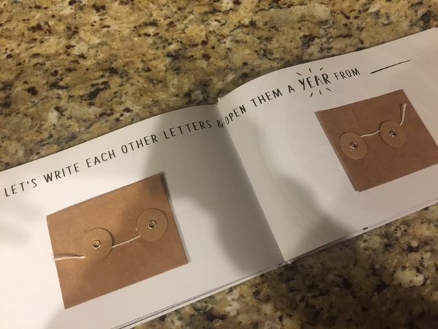 There’s a great page where you write each other a note, put it in the envelope and don’t open it for a year. My daughter thought it would be romantic if we open it on Valentine’s Day next year.