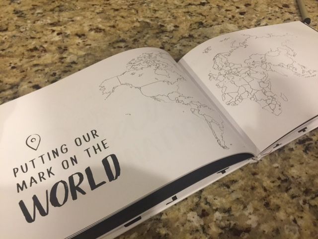 A map that we had to color all the places we’d been together. It was fun to look back on all our past vacations.