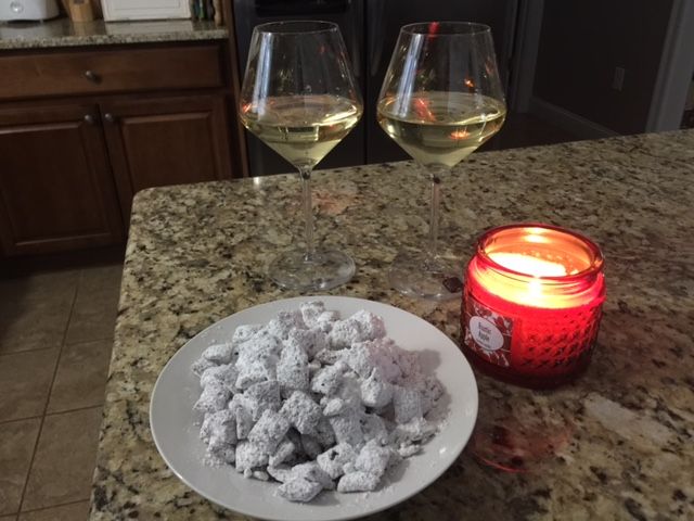 First step was making our snack…puppy love. It was a mix of rice Chex, chocolate chips, peanut butter, margarine, and powdered sugar. It was a yummy treat to enjoy during our date since it was sinfully sweet!