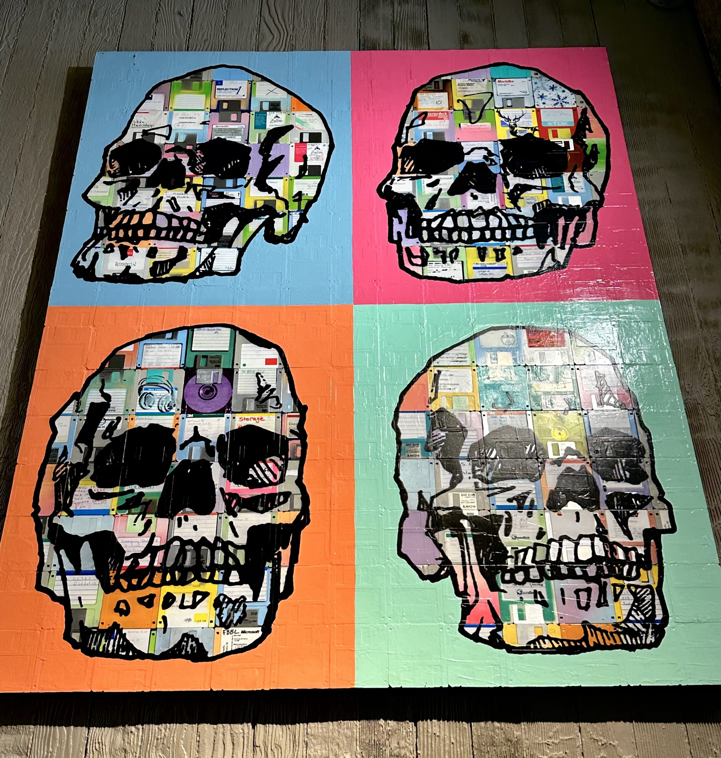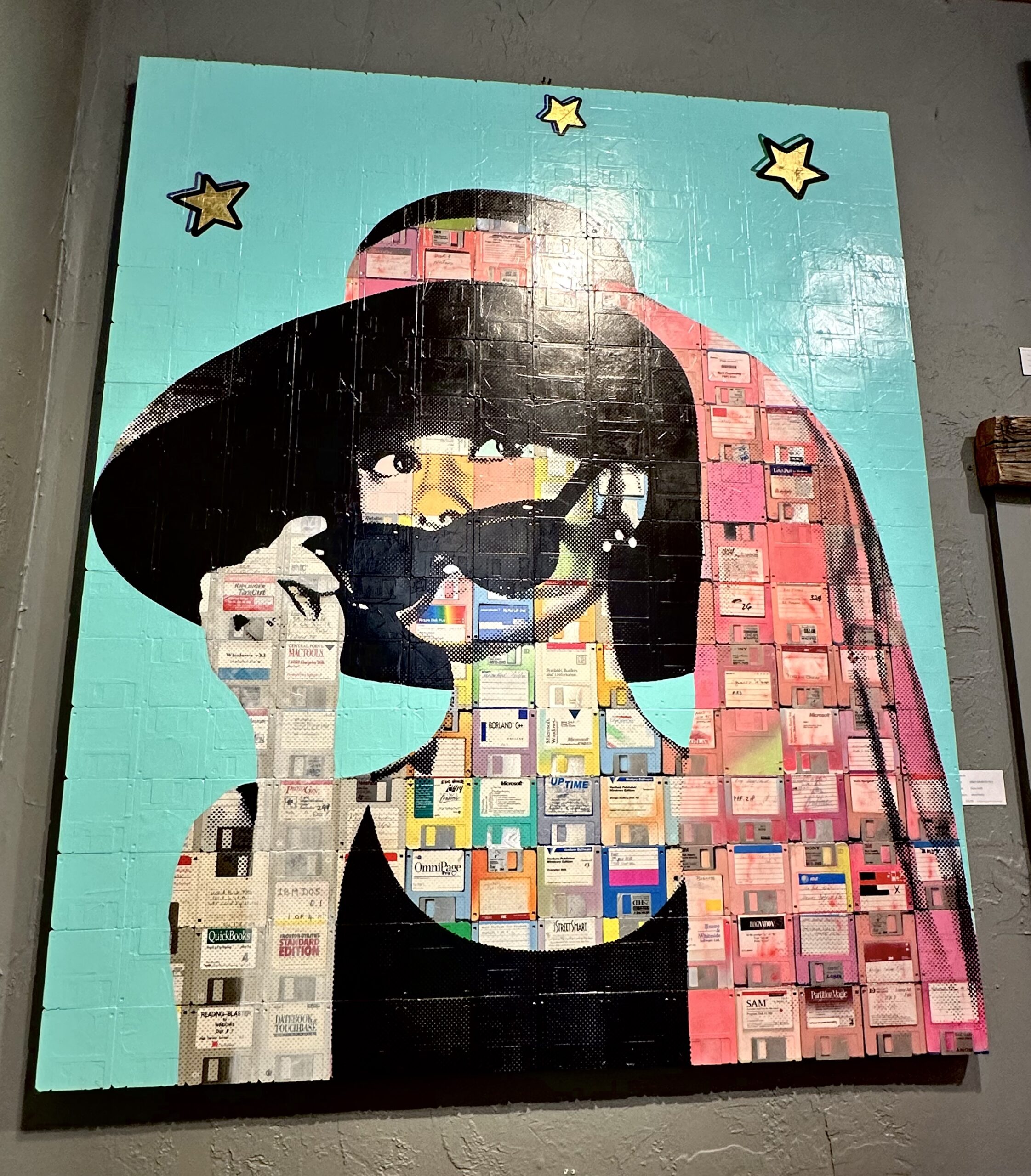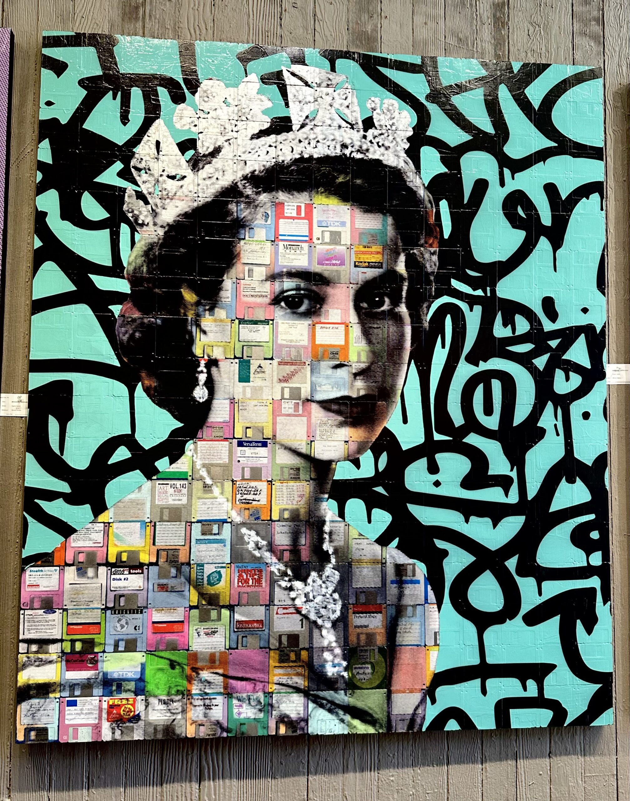 Want to be transported back in time? Check out these mixed media pieces by Taylor Smith. If you look closely, you see they repurpose computer disks in the art.