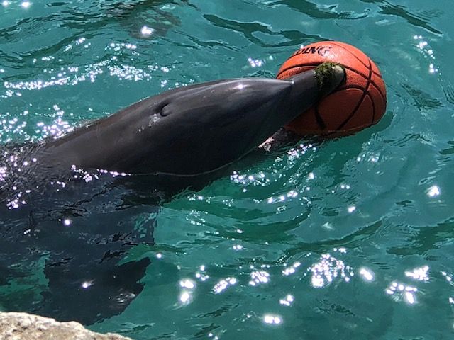 We didn’t want to say goodbye to them, but our time was up. We learned so many interesting facts about their lives, bodies, and environment. My girls would have come away with so much more knowledge. When we were leaving we saw them throwing a bunch of balls into the lagoon and the dolphins all went crazy swimming around and stealing them from each other. They looked like a bunch of puppies!