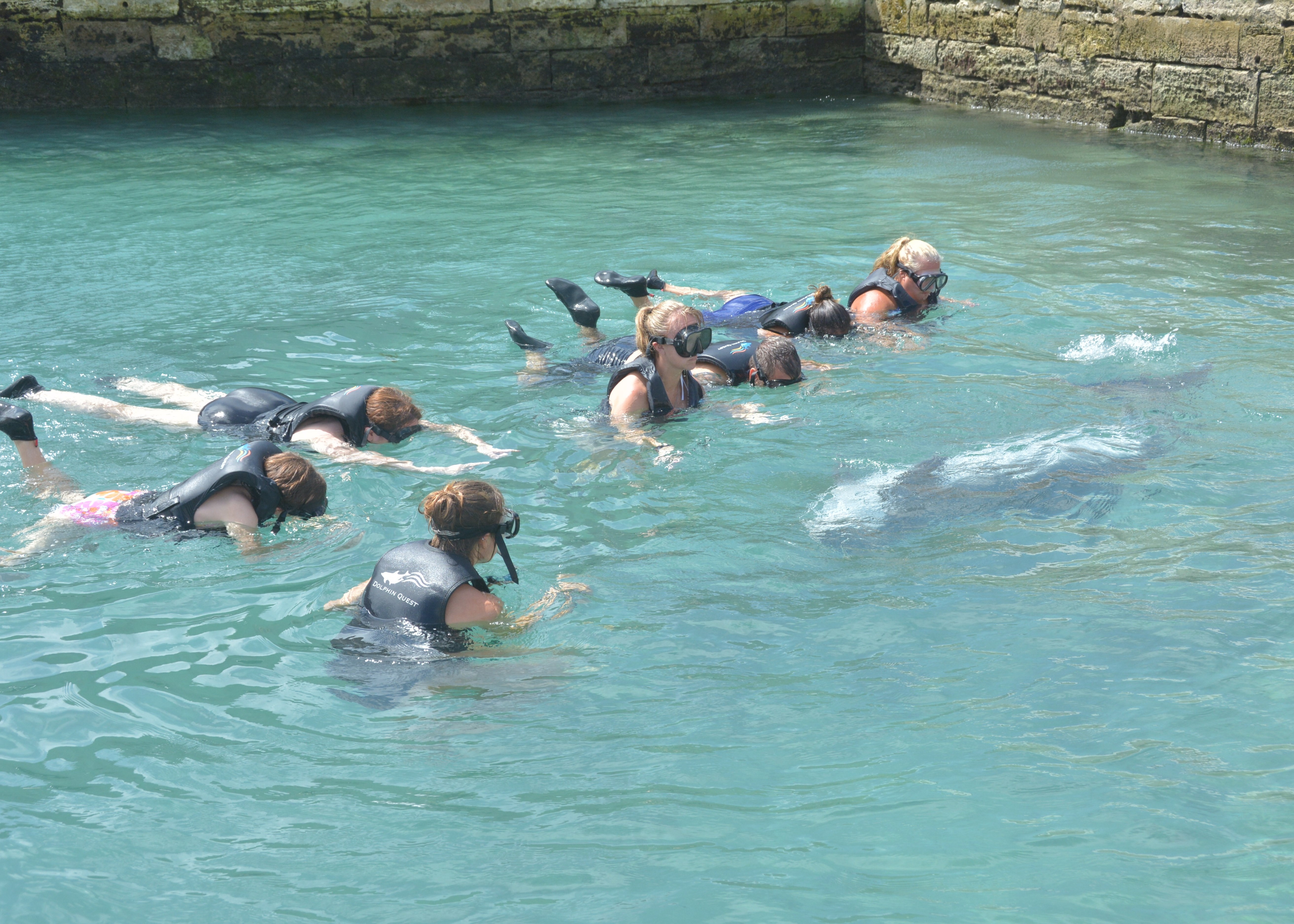 We then moved into a different ocean-fed lagoon and it was time to put our goggles on and float around as they swam around us in the water. I loved having the opportunity to see them under water since in a dolphin swim you usually don’t. You get to see them gracefully using their powerful tail to move around and they swim right up to you, which is a cool moment you get to share under water.