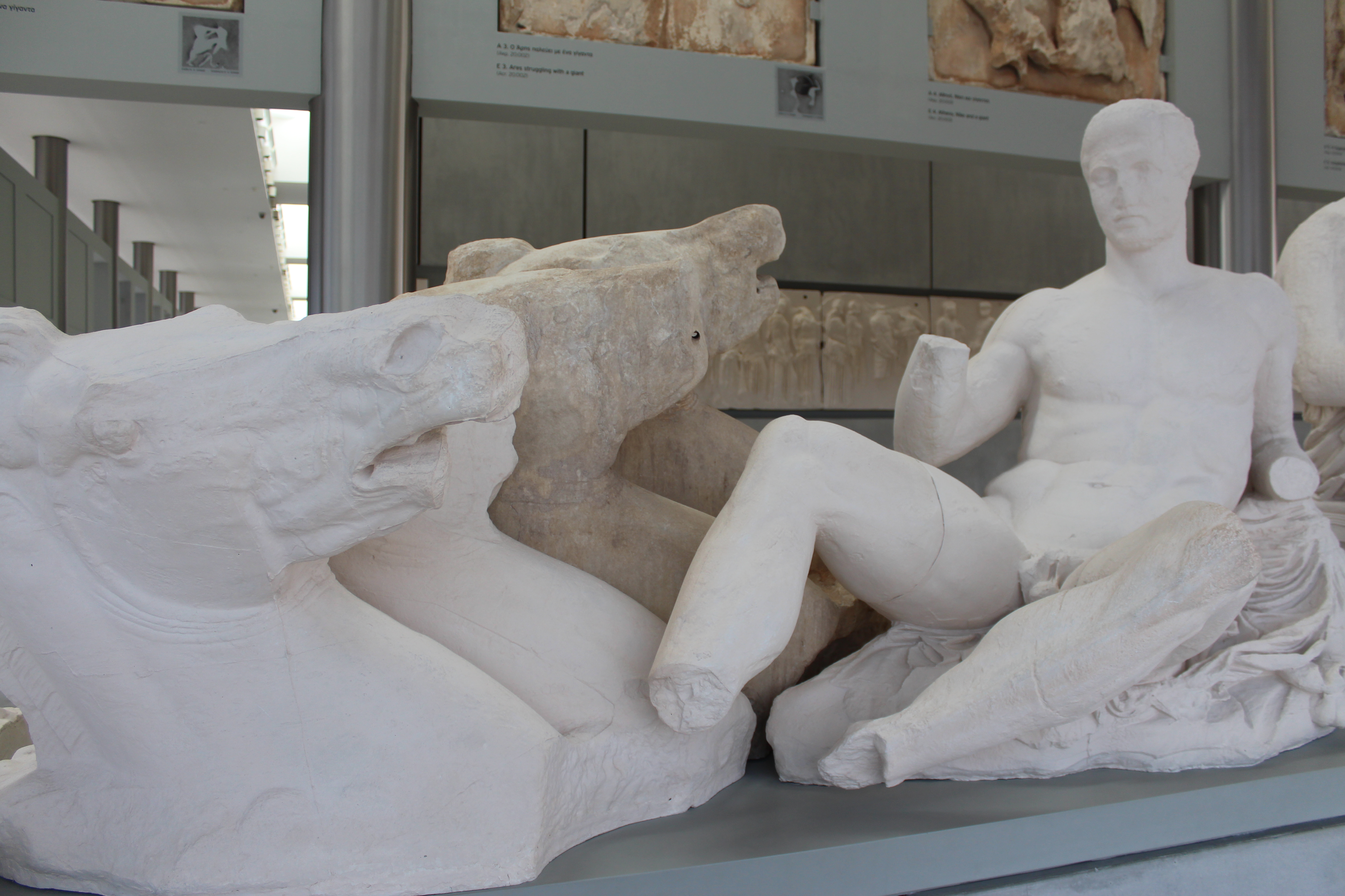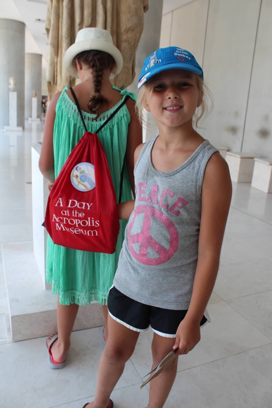This museum was so much fun for our girls. Parts of the floors are made of glass so you can see the ruins beneath you. It was a little scary to walk on them and we giggled because it feels like you are walking on air. To keep your kids entertained, I would suggest getting the backpack activity pack at the entrance of the museum. It is a free activity and it contains a map that has clues to where you can find the different statues of Athena. When you find the correct statues you place a sticker in its spot on the map. They were so involved in the game that the adults were able to enjoy the whole museum without one minute of whining. The museum is filled with statues and artifacts of Athens. There is this neat section of the museum that has statues and wall paintings taken from the Acropolis and the entire museum wall is a window that overlooks the actual Acropolis.