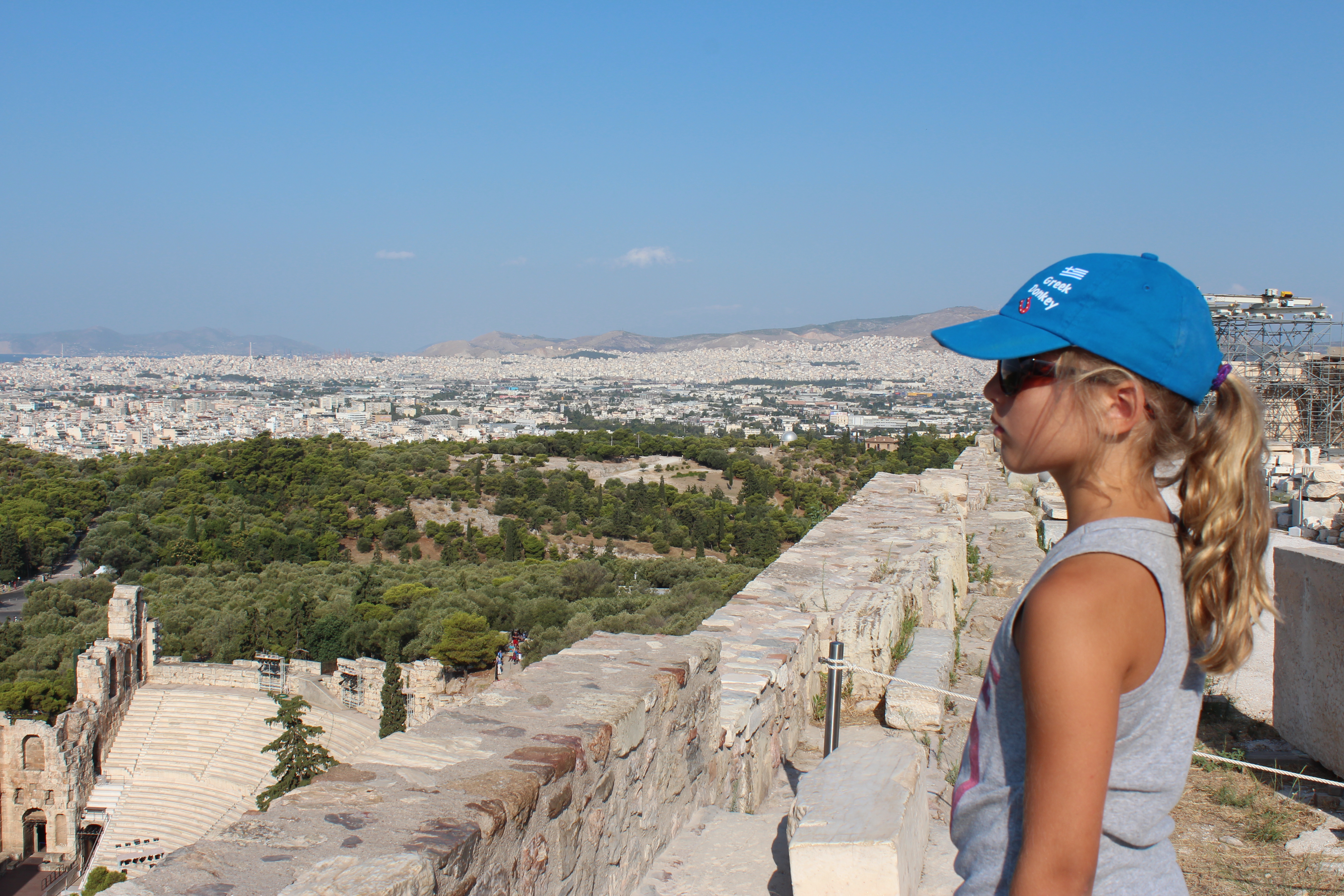 If you are going to be near Greece I would suggest stopping in Athens for a day or two. The city reminded me of Rome, filled with amazing monuments but with a McDonald’s right next door. The modern aspect of the city takes away from the historic atmosphere but it is still worth a visit. Athens is a crowded, busy city, and not the cleanest I’ve been to but it was amazing to see historic sites like the Parthenon. My older daughter read a book about mythology so she was so interested in the tales that went along with what we were seeing.