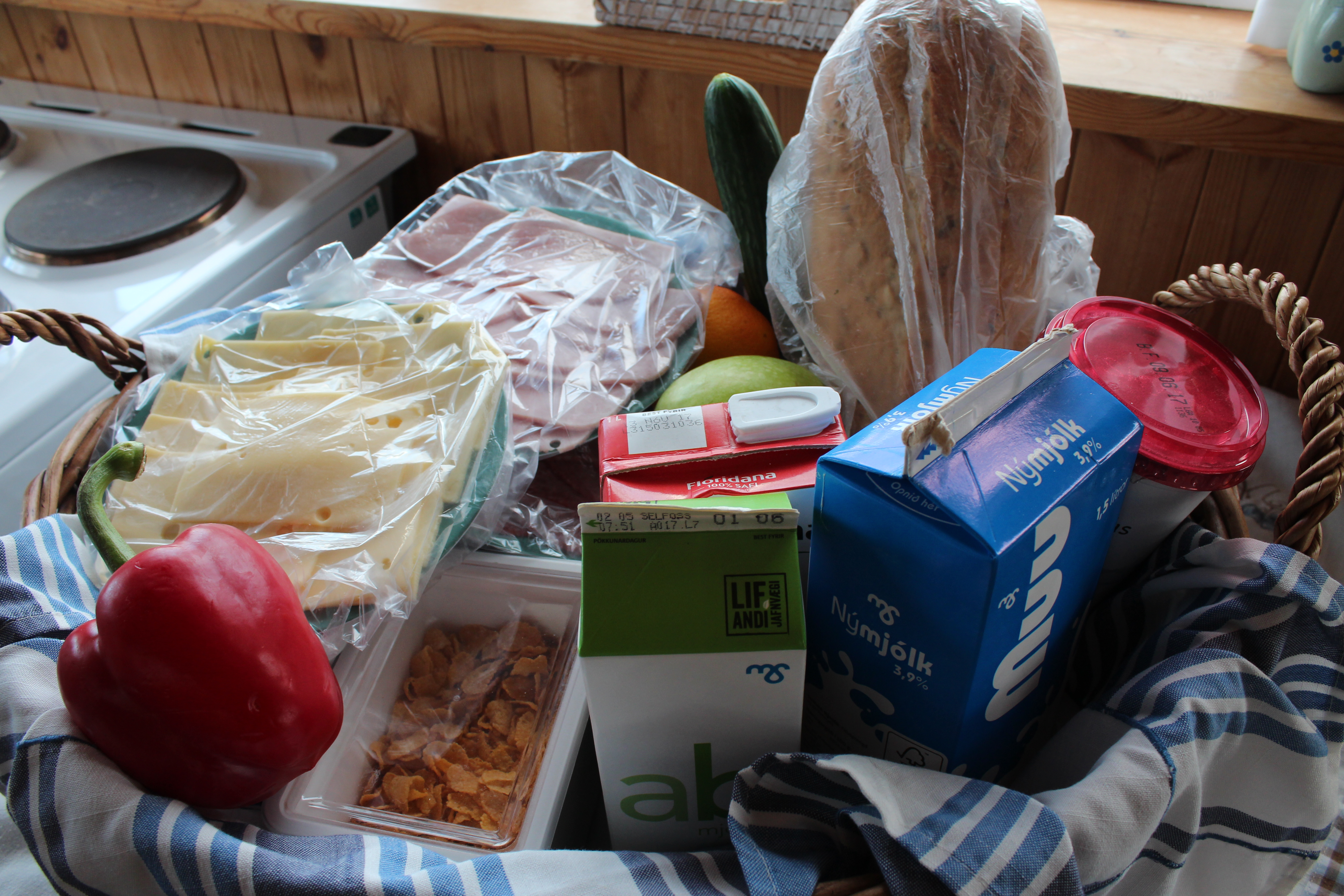 The hotel has a quaint dining room with the most breathtaking panoramic of the countryside.  The view includes three glaciers and is the perfect place to eat.  When we were there they were not serving food in the dining room so instead they gave us a fantastic basket filled with food for breakfast.  We could not believe how much they provided including bread, cold cuts, cheese, fruit, tomatoes, vegetables, apple juice, milk, and muffins. There was so much that we even packed ourselves a lunch for the next day.