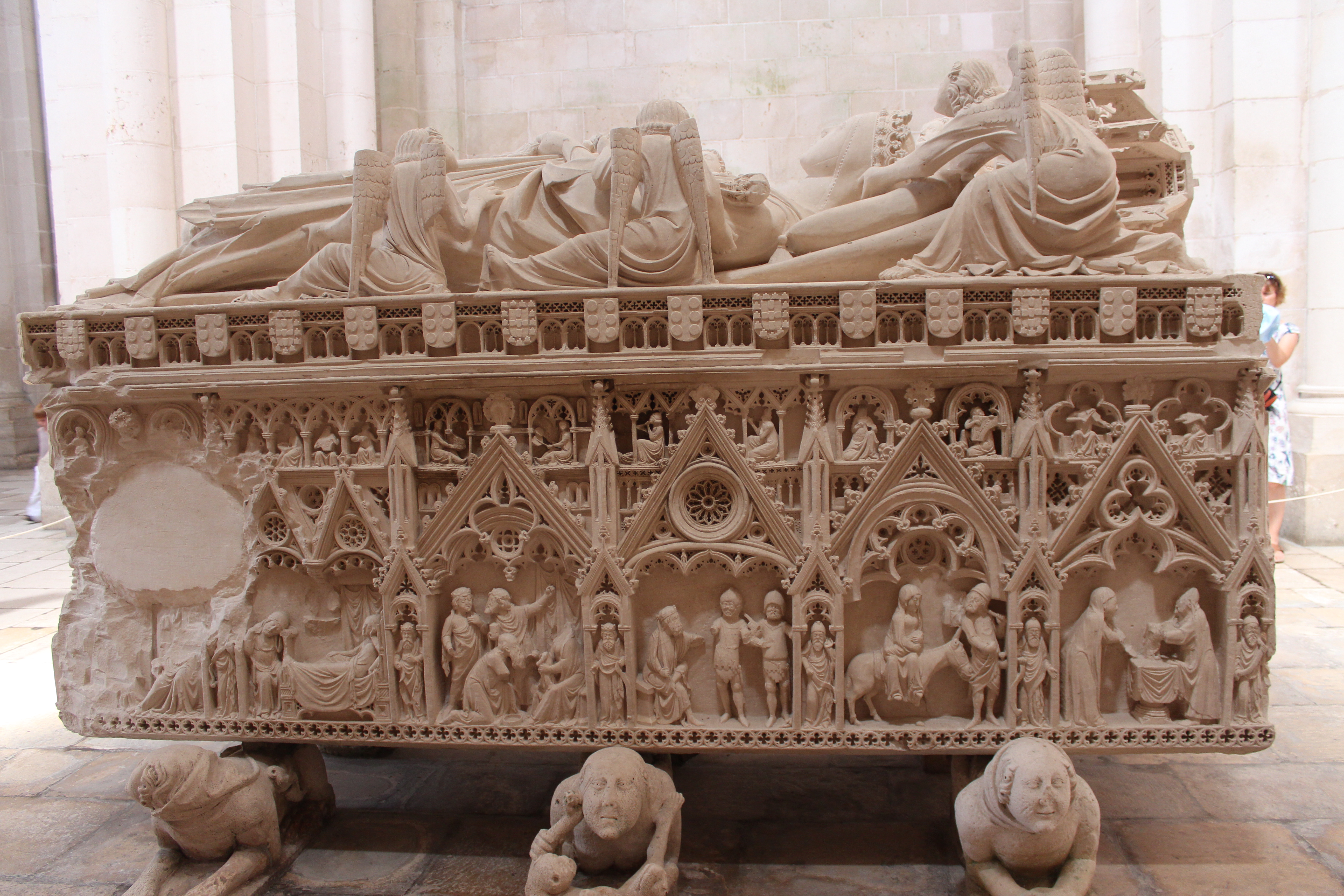 Since it was over 90 degrees in Portugal the July we were there we decided to do some day trips out of Obidos, where we were staying. We would drive to a town, spend half a day there visiting the most important site and then head to the closest beach in late afternoon to cool off. Alcobaca is only 25 miles from Obidos and it is 75 miles from Lisbon. I wish we had taken the time to see the town since it was very quaint as we drove through it. The main site we visited was the impressive monastery.