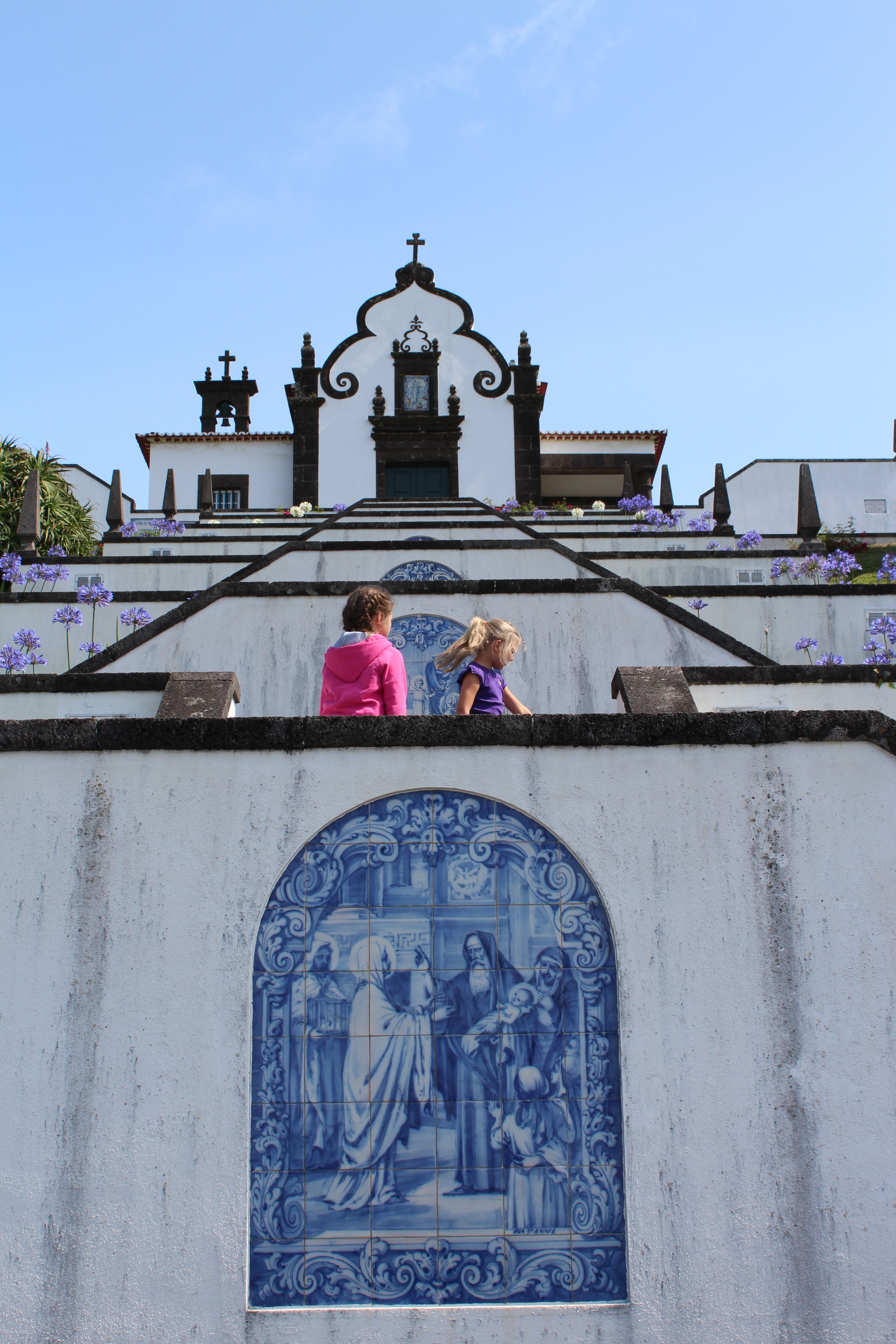 When we were planning our trip to Portugal, my mother-in-law and I decided to include the Azores so we went a few days early with the girls and met my husband later in Portugal. My aunt was born here and she spoke so highly of it we wanted to experience it ourselves. We took an overnight flight (which I never sleep), checked into our hotel, took a nap, then went out to explore the city. The city turned out to be just as beautiful as she had described. The town we stayed in, Ponta Delgada, was a safe waterfront town filled with restaurants, shops, and lovely churches. Our favorite day was when we rented a driver and got to see all the amazing parts of this island. I had never hired a driver but I would highly suggest it because we would never had found some of the hidden gems that he showed us. The people of Sao Miguel were so kind and welcoming and it is a very family-friendly island.