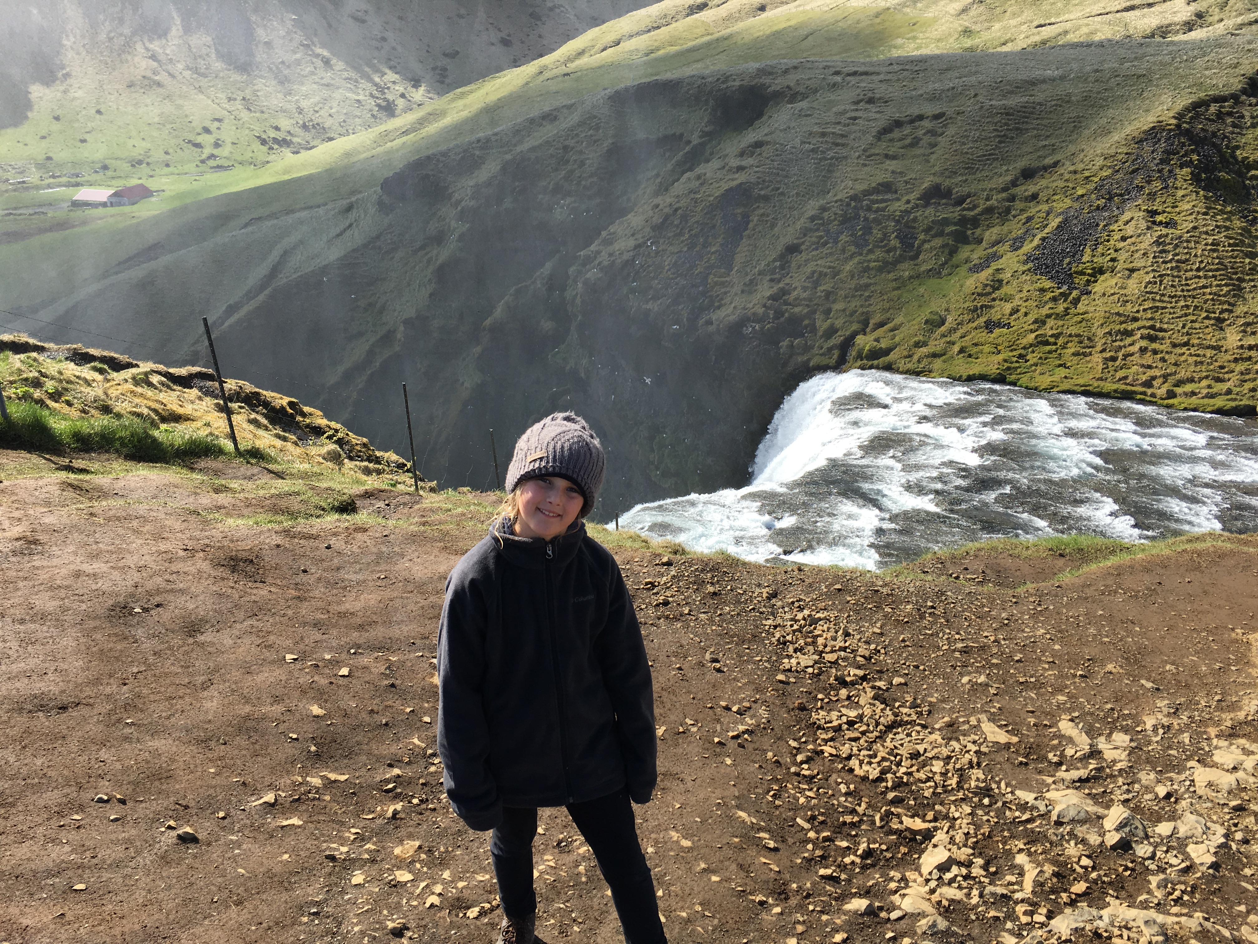 The sheer size of this waterfall will make you stop in your track. It is almost 200 feet wide and over 80 feet high, and is one of the most beautiful waterfall in Iceland. First, we decided to climb the stairs to get to the top of the falls. A word of warning if you are nervous of heights like I am… 400 steps is super high…like ‘I wish I had a Xanex high’!! The metal steps move a bit when someone is going down the steps and about every 50 steps the railing disappears and a rope takes its place. I was white-knuckled the whole way up!