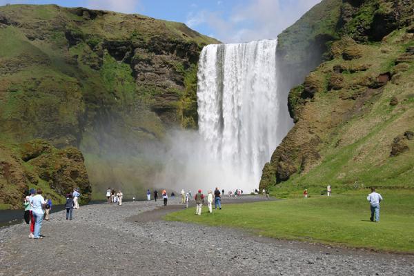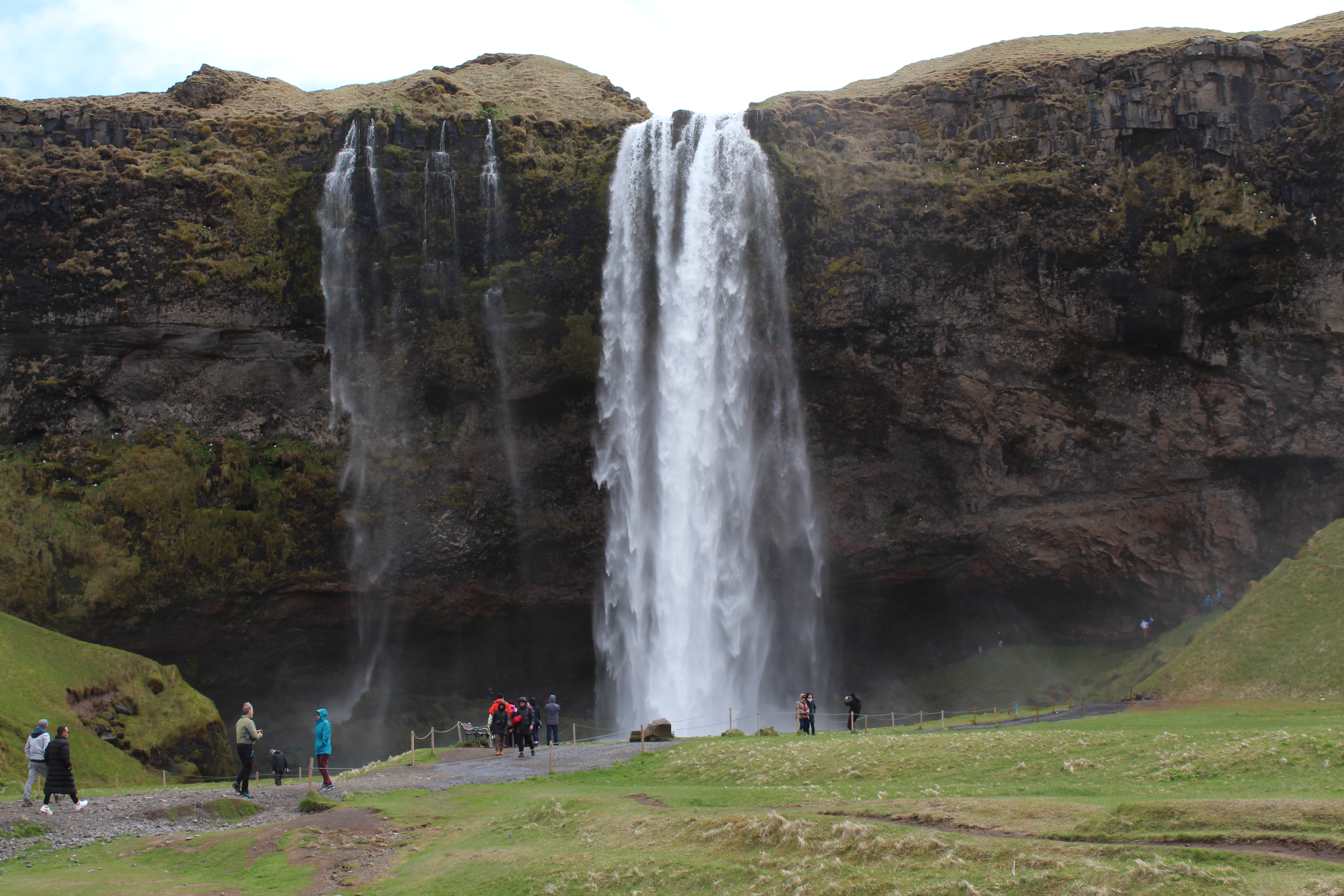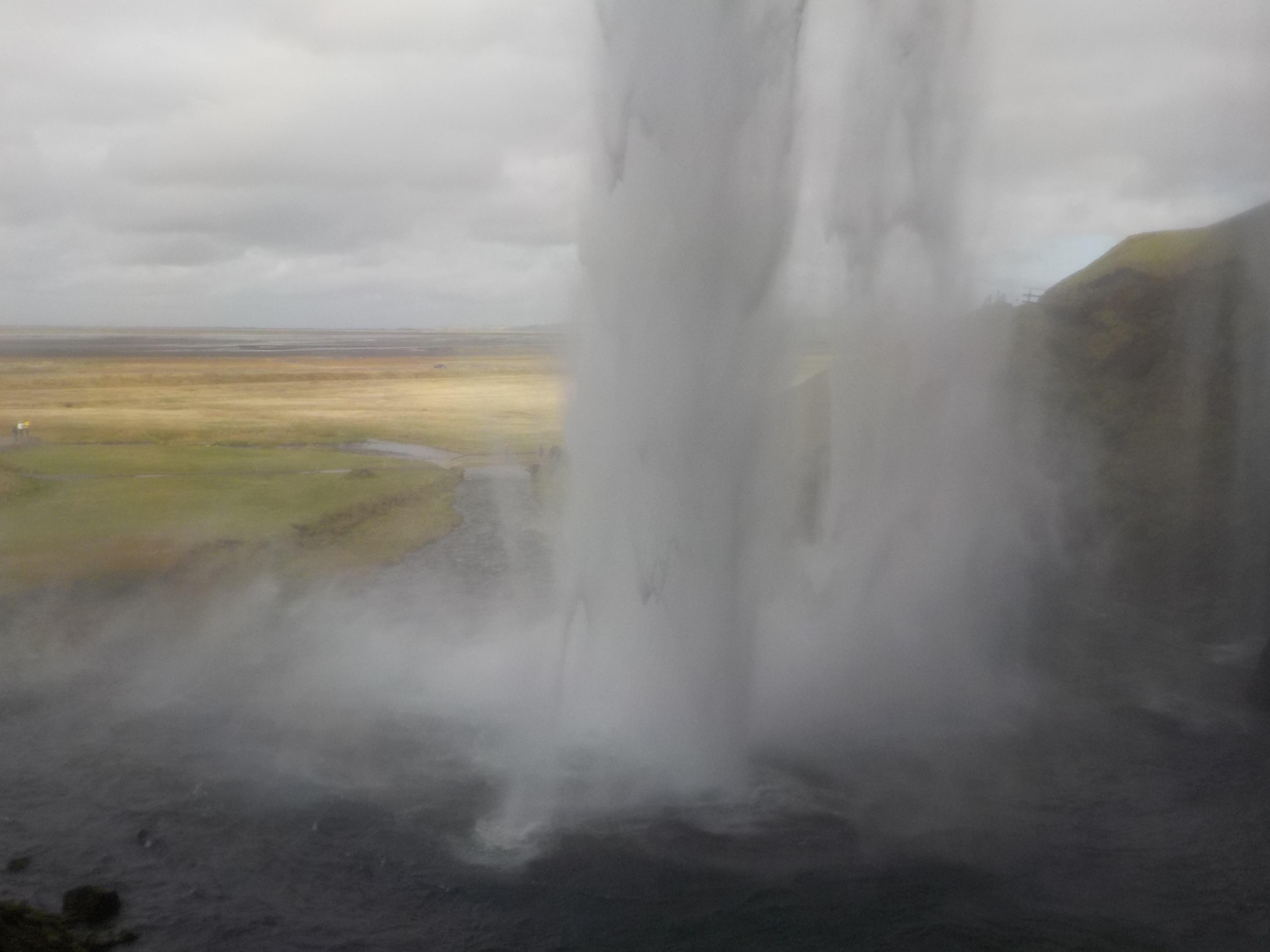 Just off the Ring Road you will come across an enormous waterfall cascading off the side of the mountain. The falls are narrower than some of the others, but the water drops over 200 feet! There are hundreds of waterfalls in Iceland, but the incredible thing about this one is you can walk behind it. You can follow a path that leads you in a circle behind it and out the other side. Some parts are rocky, but for the most part, it is a smooth path. The force of the water send waves of mist onto you and the sound is deafening. The view from behind the waterfall is incredible.