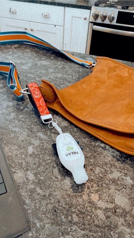 However, my new favorite thing to do with it is it to clip my hand sanitizer to my purse so I don’t have to put my unsanitized hands in my purse.
