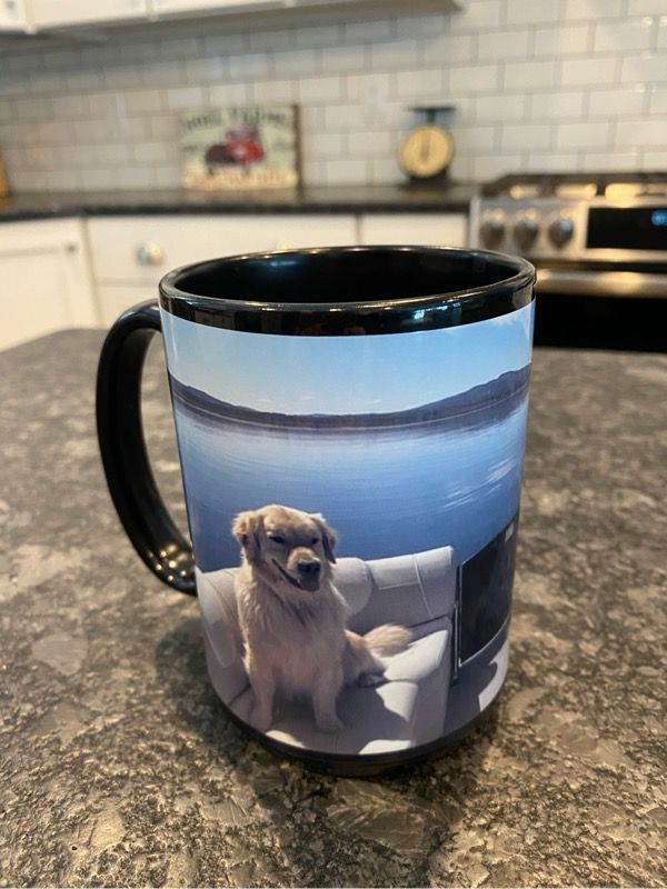 This has quickly become my new favorite mug. My girls joke with me that I put pictures of the dogs on it instead of them..lol. I love the quality of the mug and how it fits in my hand. I also like how they give you the option of wrapping the picture around the mug instead of only having it on a side. Seriously….how cute is this mug?