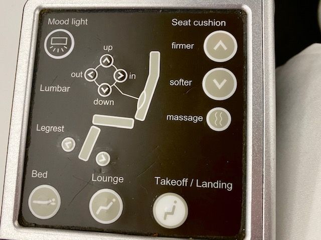 From your armrest, you could control your mood lighting, firmness of your seat cushion, lumbar, and leg rest. And yep…you saw that…there was a MASSAGE function! It was the first time in my life I didn’t want my flight to end!