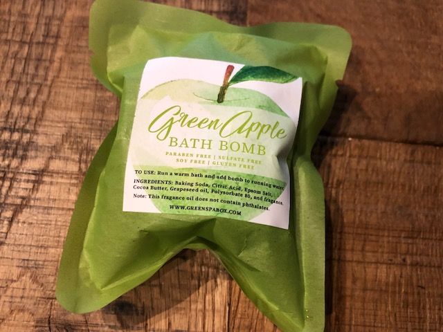 GREEN APPLE BATH BOMB: This bath bomb smells amazing! I can’t wait to slip into a warm bath with it. It would be the perfect time to use the face mask!