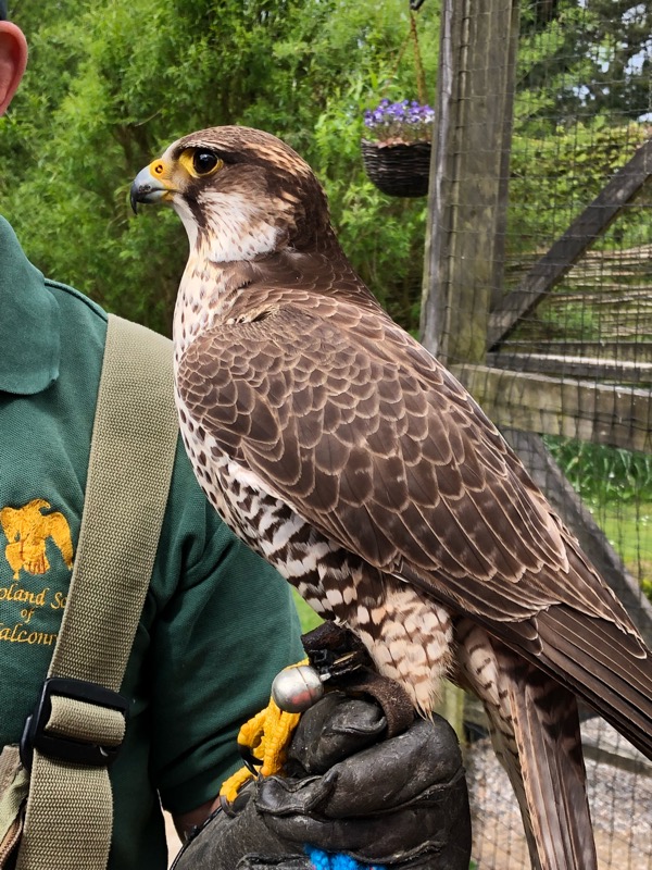 After our walk Damien brought us back to the mews to meet some of the other birds that live at the castle. We were introduced to some peregrine falcons, the fastest animals on the planet.