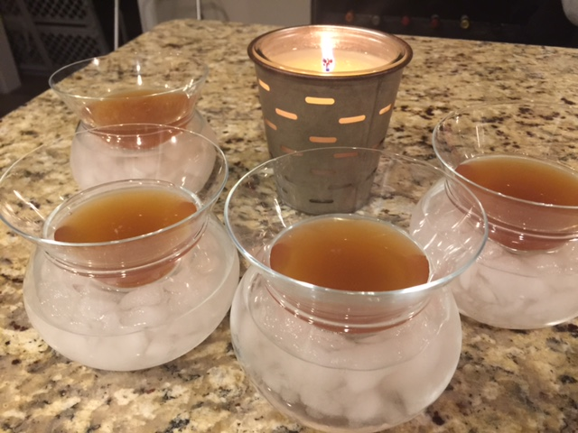 How was it? This one was good…strong…but tasty. We all said it would be a great winter drink since it warmed us up. I think it would be a nice drink to have at an outdoor winter bonfire. My only complaint was not with the drink but with Mother Nature since peaches are not in season right now so we had to replace them with frozen peaches. They were hard to muddle. I would love to try this drink again with fresh peaches.