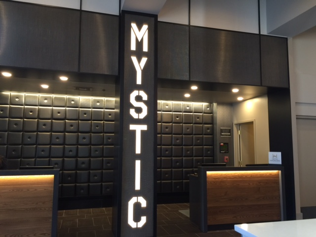 Check into the Hilton mystic. It has the best location since it right across the street from the aquarium and great shops.