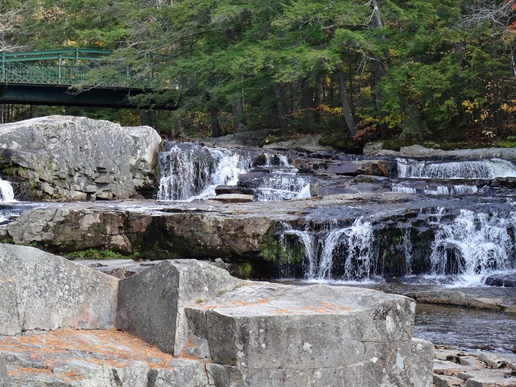 One of my favorite places to experience the amazing foliage of New Hampshire is Jackson Falls, a waterfall that cascades over smooth granite rocks into pools that create personal swimming pools for visitors.