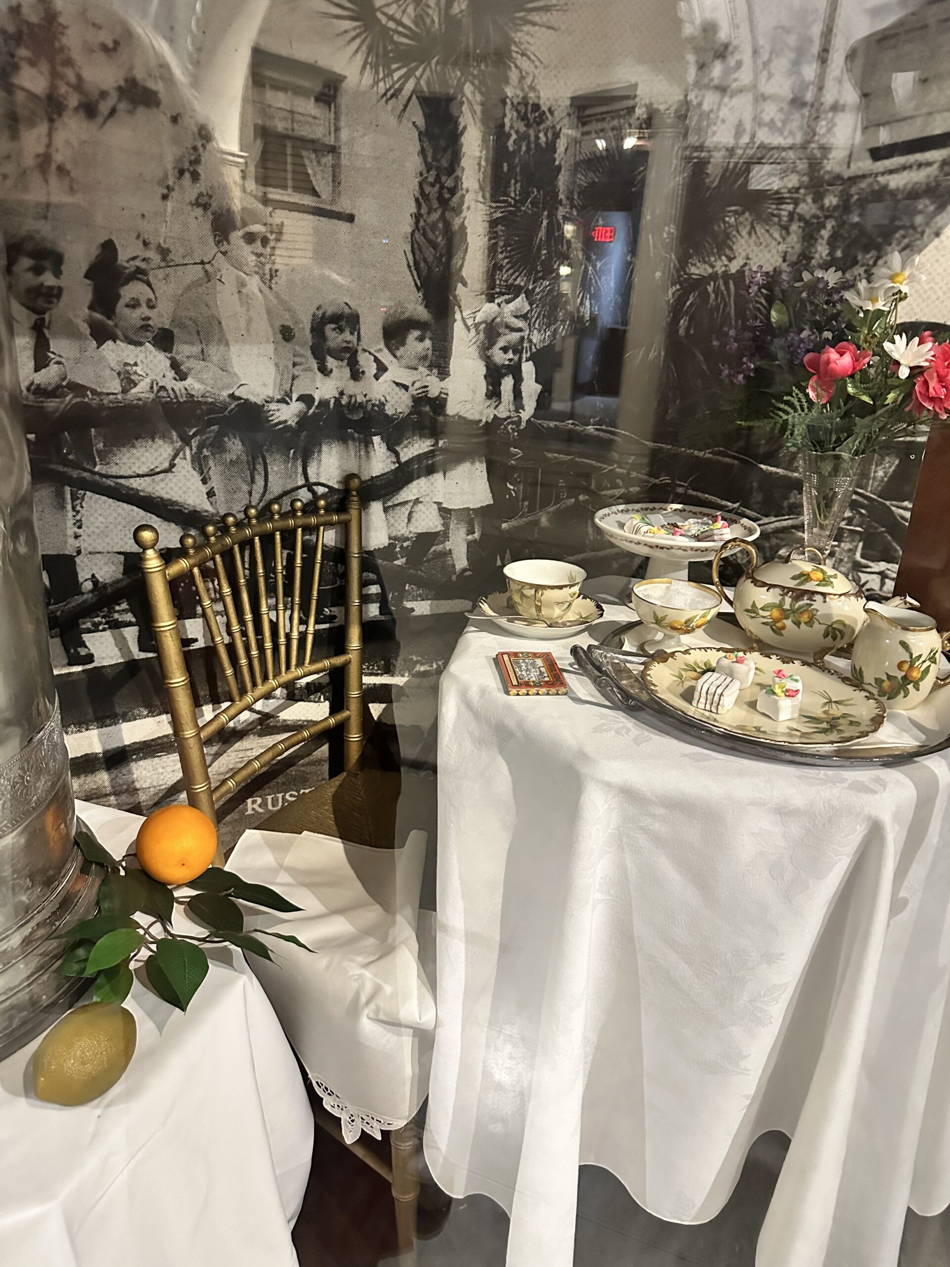 Café Alcazar, located in the museum’s former indoor pool, is a unique dining experience. I enjoyed sipping on champagne, enjoying a delicious meal, and listening to a talented guitar player. I recommend having the tomato basil bisque and warm ham and cheese on a croissant.