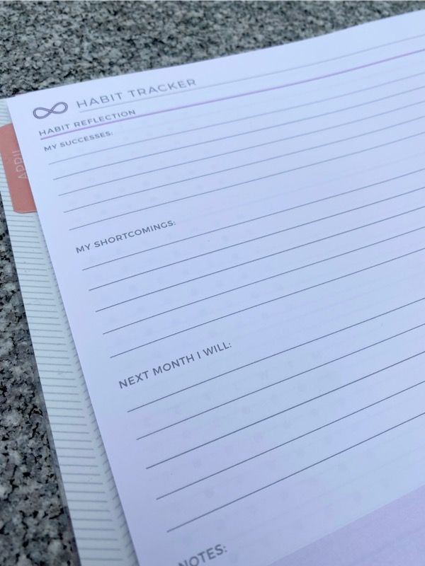 It also allows you to reflect on your habits for the month. You can list your successes, your shortcomings, and how you will improve next month.