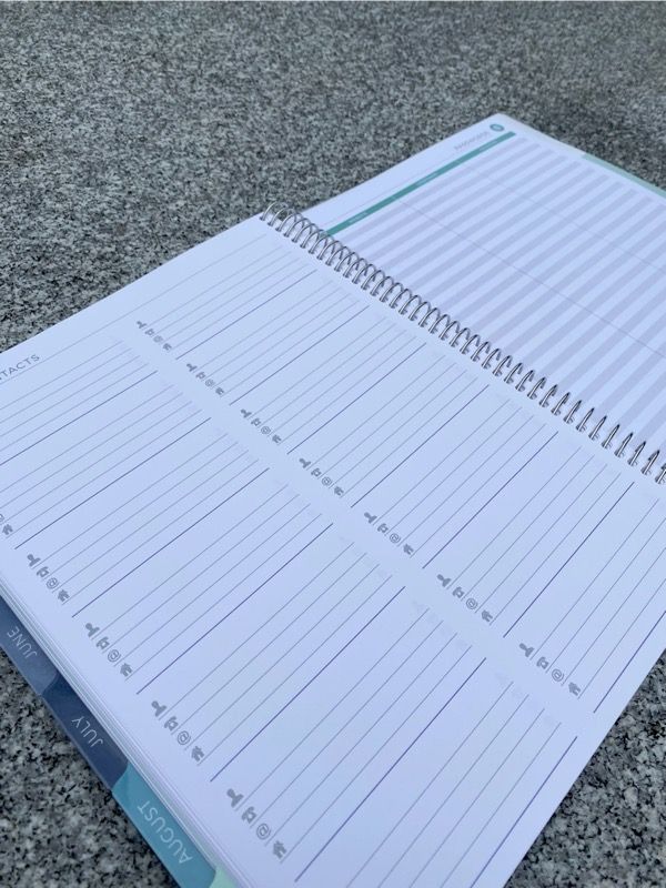 I also like that there is a folder in the back. There are also spots to write bullet notes, contacts, passwords, and a yearly calendar.