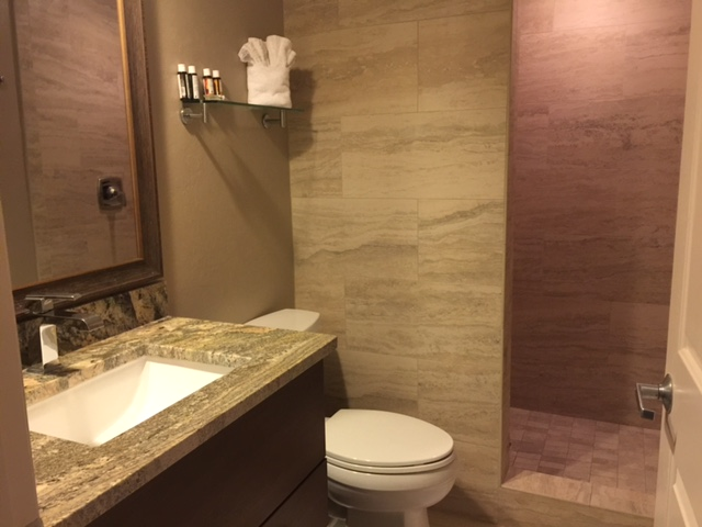 The girls had their own bathroom. It had beautiful granite details and a modern sink. It had a lovely rain shower that had strong water pressure.