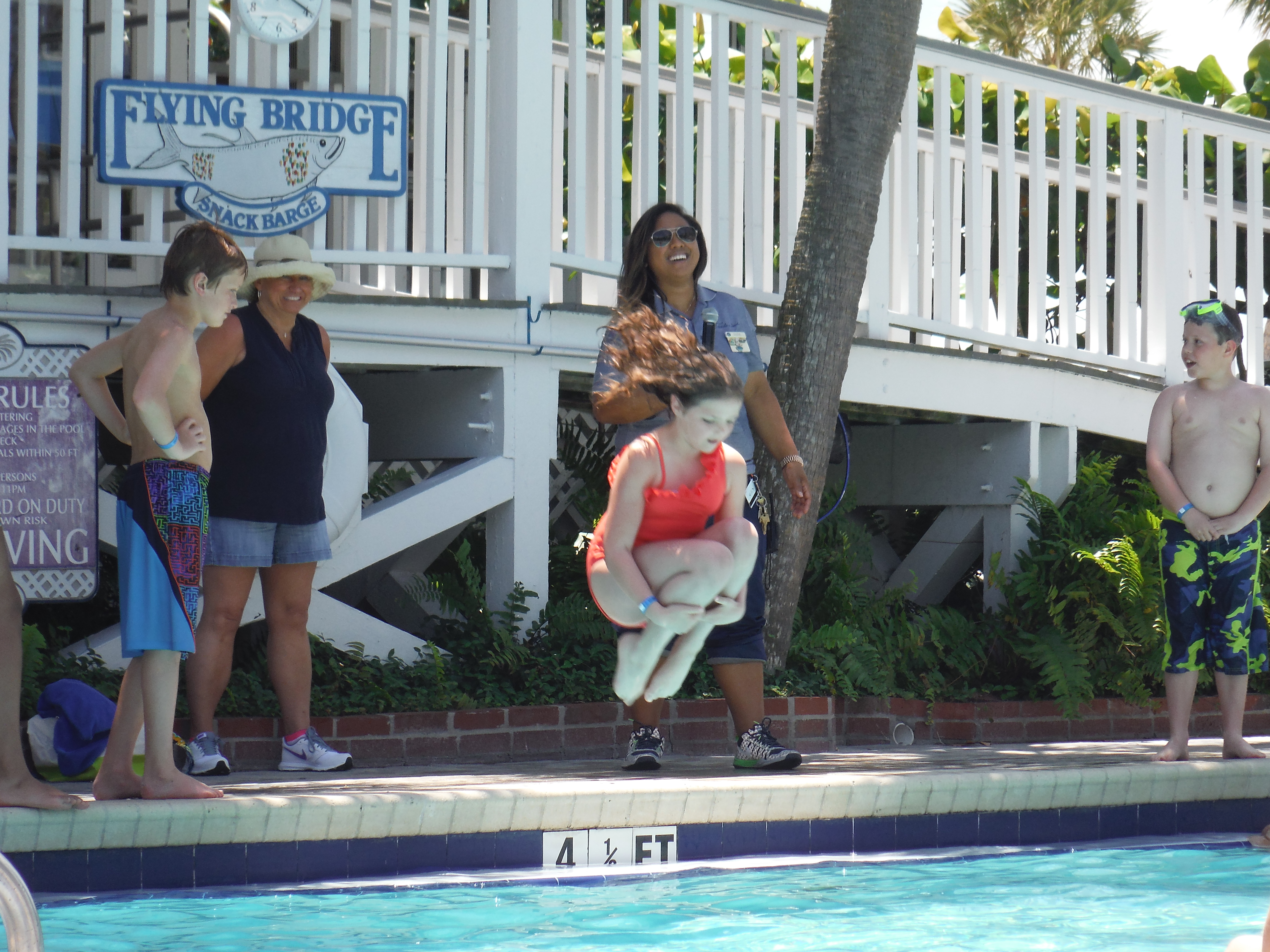 POOL:  There are 7 pools at the resort (one of them adults-only).  The main pool has a wait staff that will bring you food and beverages from the Flying Bridge restaurant, and you can even keep a running tab.  Every day they have contests for the kids.  My daughter loved the cannonball contests and they made all the kids feel good about themselves.