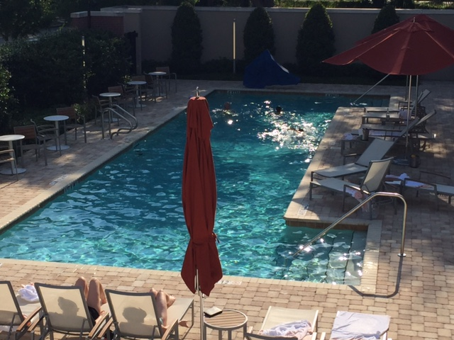 The pool area is large and there is ample seating and end tables for drinks. I was a little nervous at first because my girls (ages 7 & 9) were the only kids in the pool. But they were really well behaved (no screaming and no splashing since people had drinks in the pool) and no one seemed to mind they were there.
