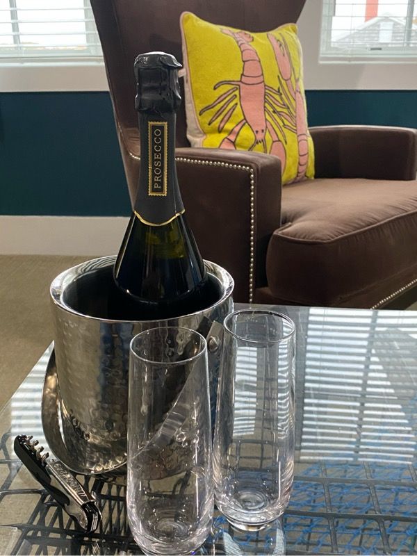 My husband and I celebrated our 20th…yes 20th wedding anniversary at the lovely Boathouse Waterfront Hotel, in Kennebunkport, Maine. Since we were in the middle of a pandemic, I looked for somewhere that was safe, clean, and small. I didn’t think this was the time to stay in a large resort and I loved the quaint feel of this place. The hotel has 25 modern guest rooms and suites, so it feels very homey. 12 of the rooms are in the main building and 13 are across the footbridge and are done up in stylish beach décor.