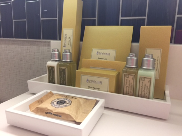 You know I love good bath amenities, and the Royal Sonesta goes above and beyond by providing a toothbrush, toothpaste, razor, shaving cream, shoe polisher, etc.
