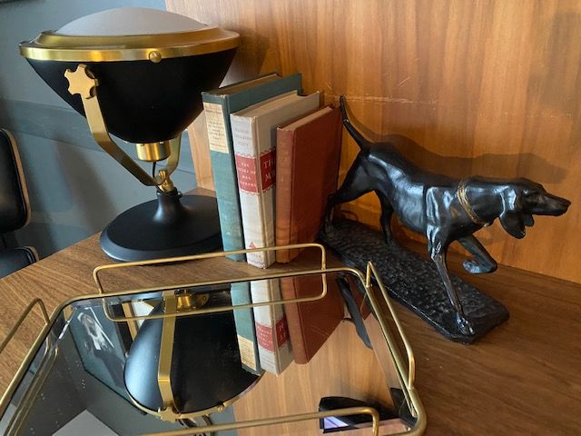 I also liked the old books, the dog statue, and the lamp.