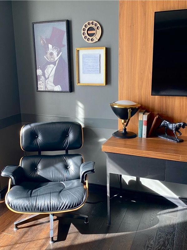 I love the rolling leather chair and the dog poster is awesome! The replica of the note from Oliver Wendell Holmes is also a nice touch.