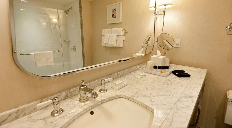 With a huge glass shower.
