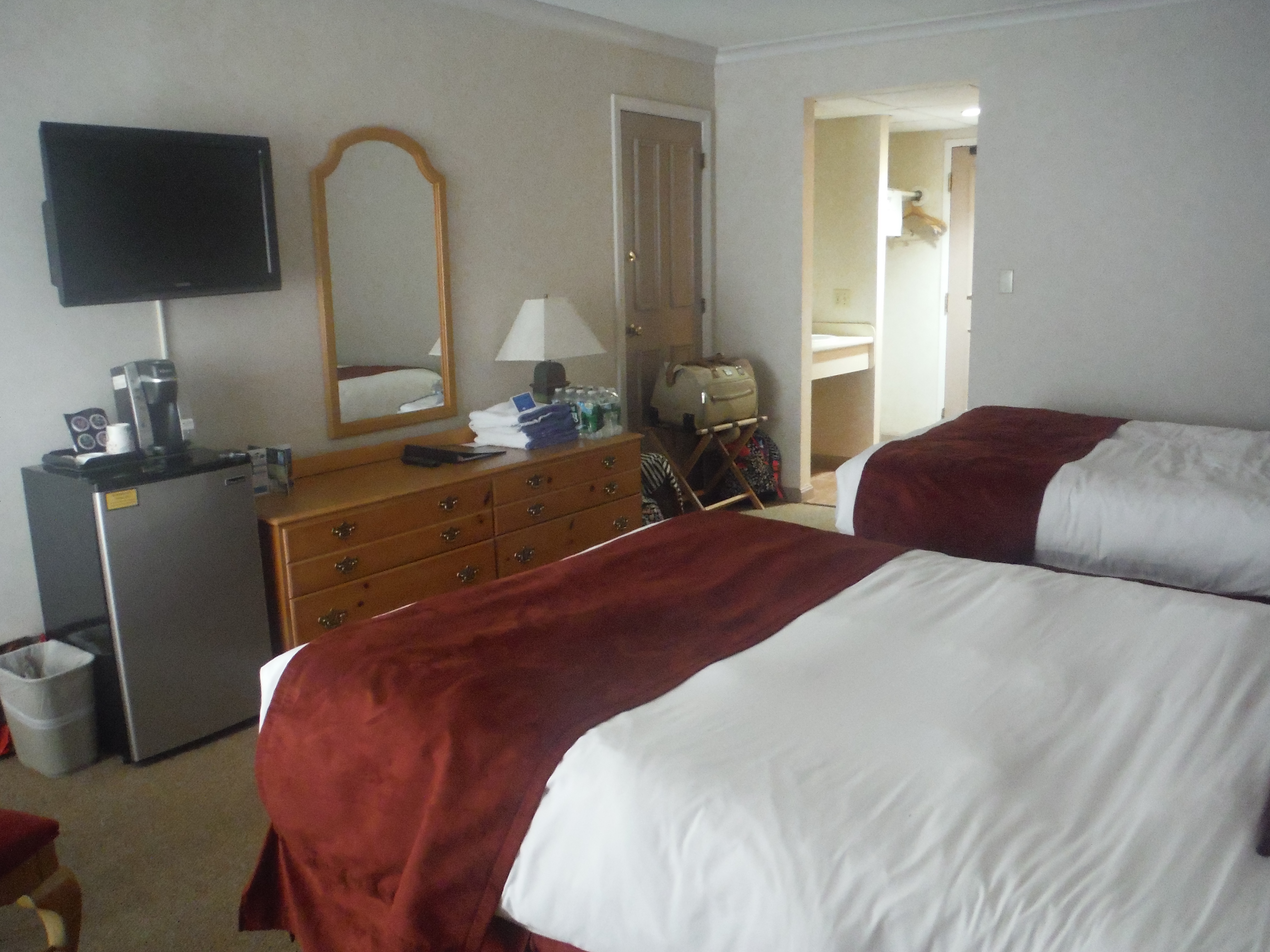 We stayed in the Lakefront Building in a room that contained two double beds. It was located right next to the beach as well as the Gazebo Bar. Our room was clean and comfortable and the pillows on the bed were amazing. It contained a stainless steel fridge, which was wonderful to store our beverages and snacks. It contained a Keurig coffee maker and they provided Green Mountain coffee. A hairdryer, iron, and ironing board helped make us feel more at home. Also, free wireless Wi-Fi was a nice touch.
