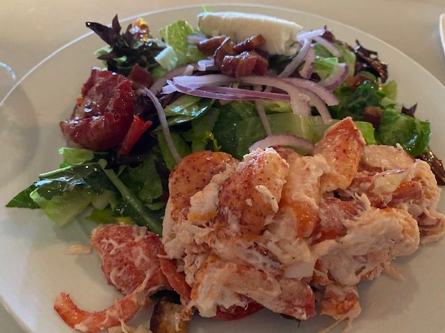 For lunch I had a chopped salad topped with lobster. The salad had sun dried tomatoes and a slice of Gorgonzola cheese.