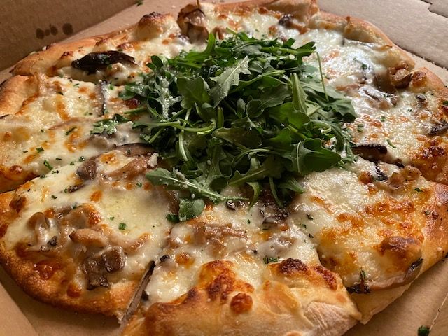 I also had an Umbria wood-fired flatbread pizza with wild mushrooms, asiago cream, tartufo oil, and arugula.