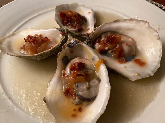 After a full day of relaxation, the only thing I wanted to do was put on my pj’s and veg out in my cozy room. The resort offers room service, so I grabbed the menu and had trouble deciding since there were so many yummy options. To start, I had oven roasted oysters with creamed baby spinach, artichokes, bacon, and fontina. (although I’m not sure if there was spinach and artichokes).