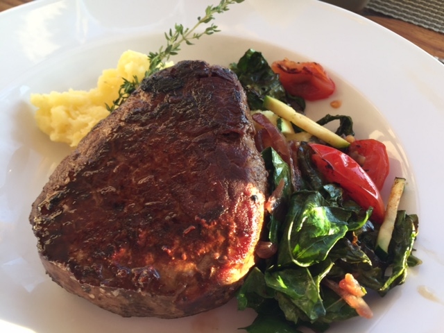 The main dish was a filet with mashed potatoes and a savory vegetable mix.