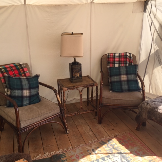 No sleeping bags here! Instead there is a king-size bed with 1,500 thread-count sheets, a down duvet, and warm Pendleton blankets. Above you, a chandelier hangs off a rustic beam, and the tent is filled with a comforting scent from the wood-burning fireplace in the corner.