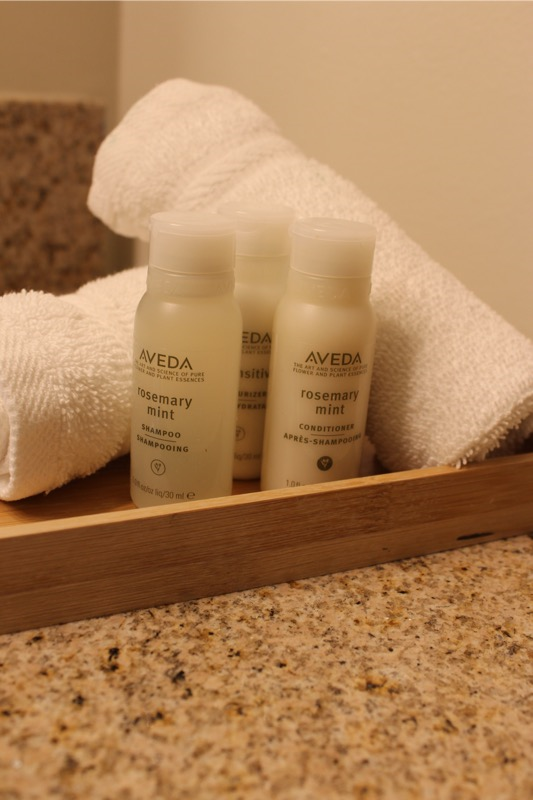 I may have dreams about this shower! It was so large and had strong water pressure. I am picky about hotel bath amenities and I was shocked to see the Hotel Indigo offers Aveda Rosemary Mint shampoo and conditioner. They are my favorites and a rare find in hotels. The hotel also offers powerful blow dryers, unlike many that offer the weak wall unit ones.