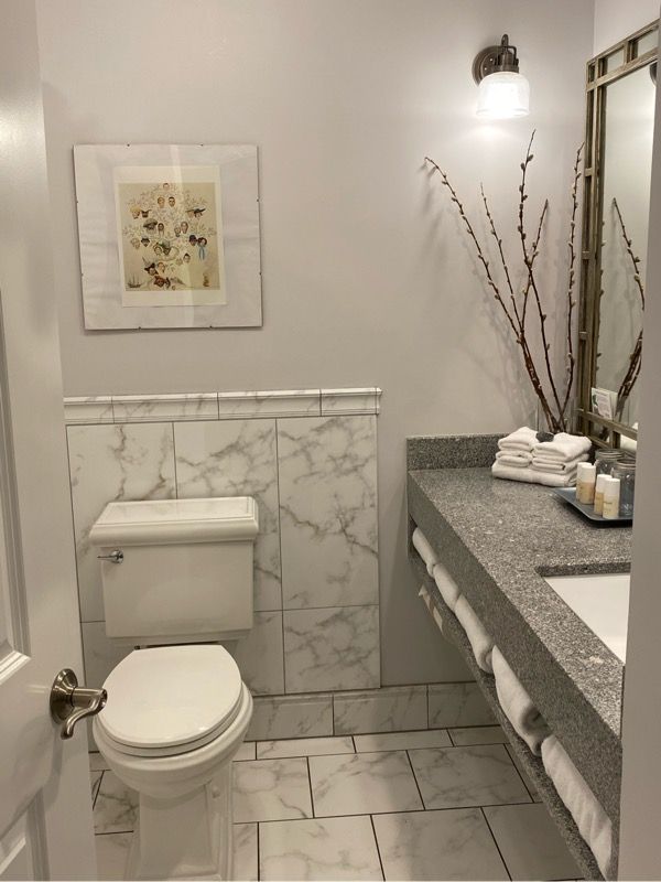 My bathroom had lovely textured marble tiles and ample room on the vanity. There was a shower/tub combo that was so inviting.